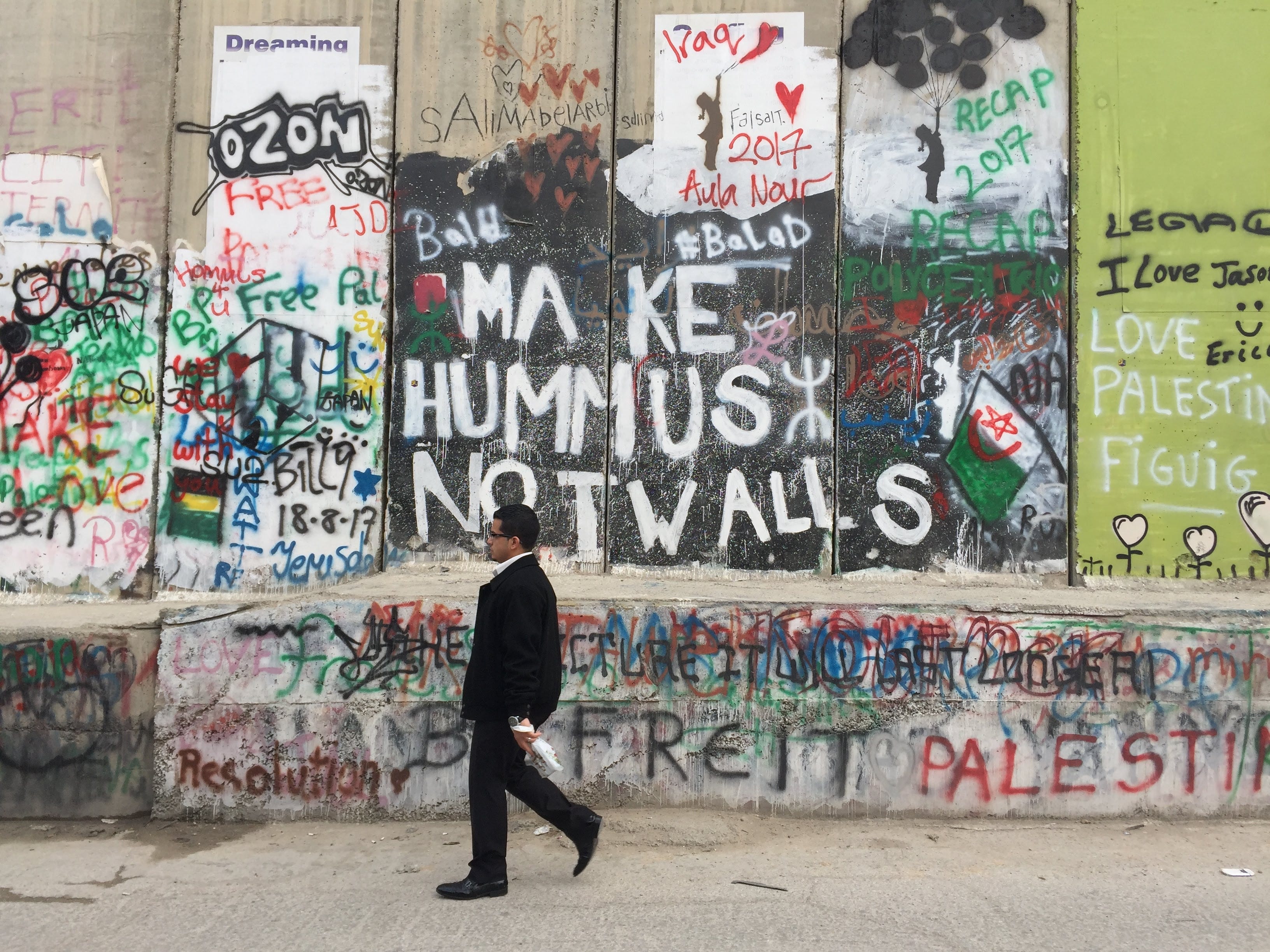 Instead we found beautiful churches, mesquites, and squares, drank good coffee and ate good food, admired art, walked on old stone streets… We also found water tanks in every single building for when the water is cut off, huge signs alerting Israelis that going there poses a risk to their lives and is also illegal, heavily guarded settlements on the outskirts, and of course a monstrous wall filled with beautiful art. Separating the haves from the haves not, for far too many years.